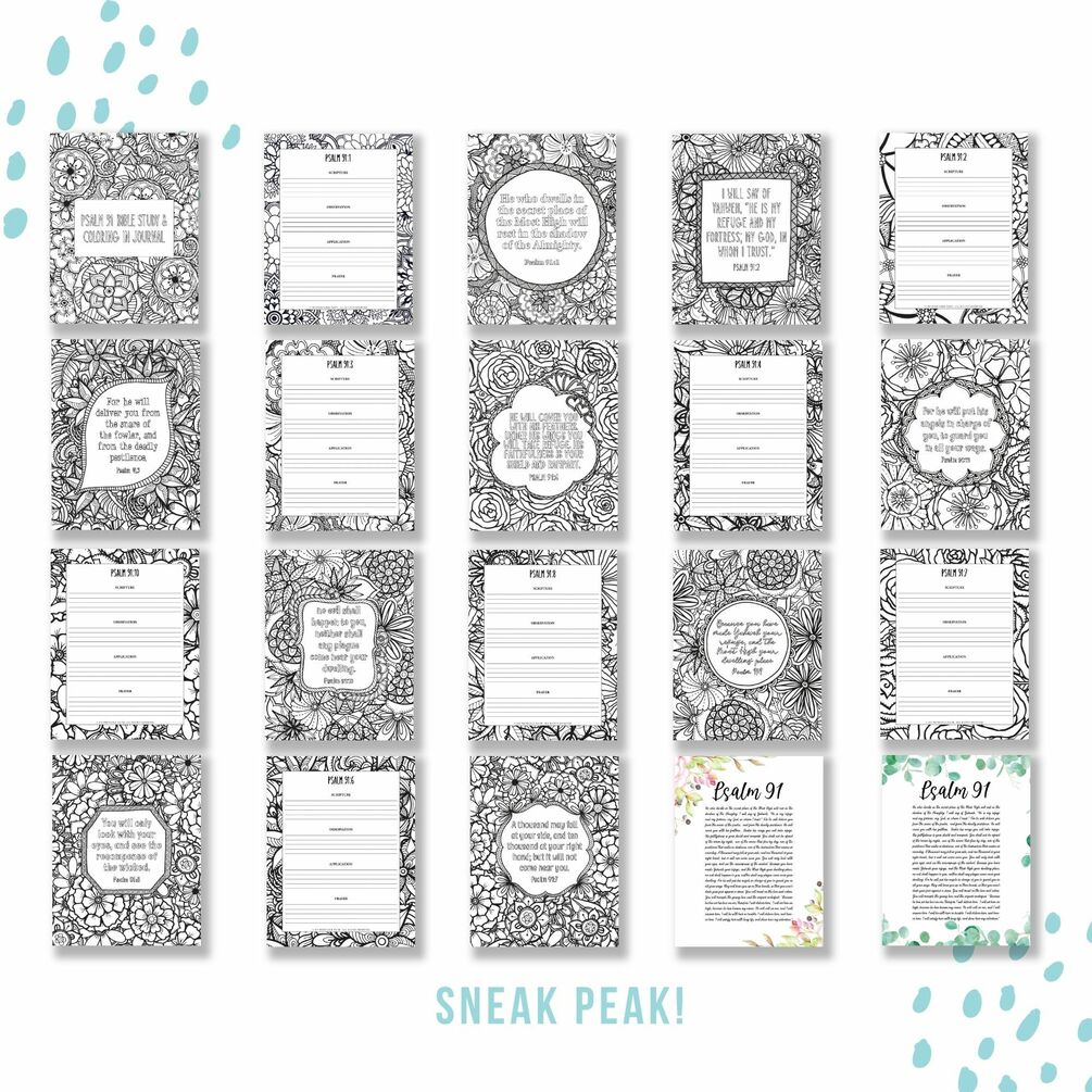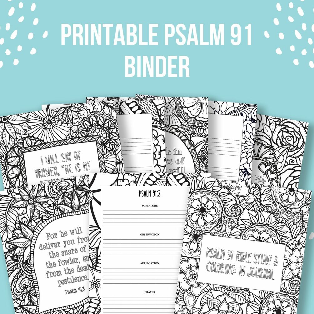 Psalm 91 Bible Study & Coloring In Binder (35 pages)
